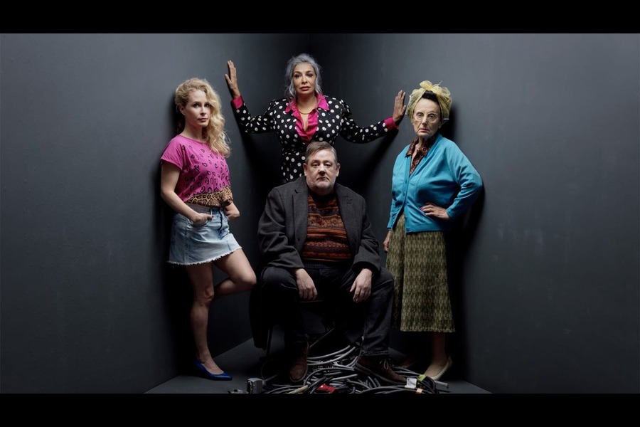 Then there’s the cast, and you can see straight away why this has become one of the hottest tickets in town. On paper alone it looks like someone’s raided the guest list at an awards do. You’ve got Johnny Vegas as the evening’s devilish compère, plus names like Sir Tom Courtenay, Lesley Joseph, Lucy Beaumont and Shobna Gulati. It’s stacked, no question. But the best thing is it never feels like a parade of celebrity turns. It’s a proper ensemble, thirteen strong, and the production has the confidence to let the less familiar faces shine too. Jake Dunn and Laura Elsworthy, in particular, land moments that stop you in your tracks.